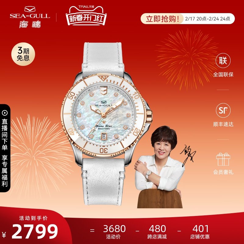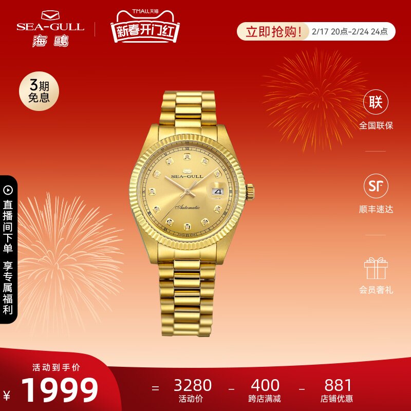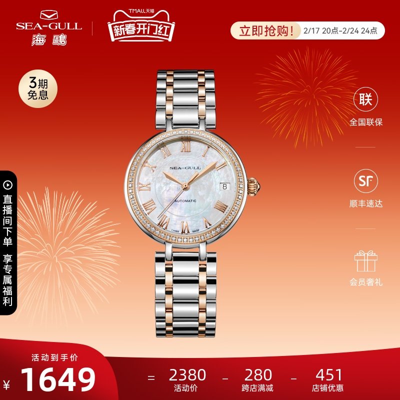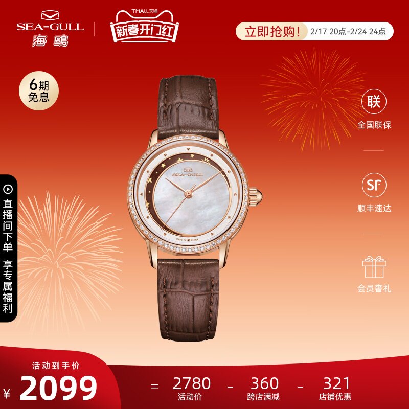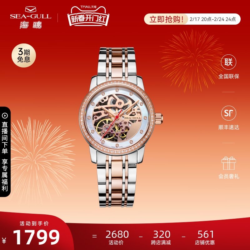 【新年礼物】海鸥手表轻奢贝母盘女时尚镂空时光女神机械表6142