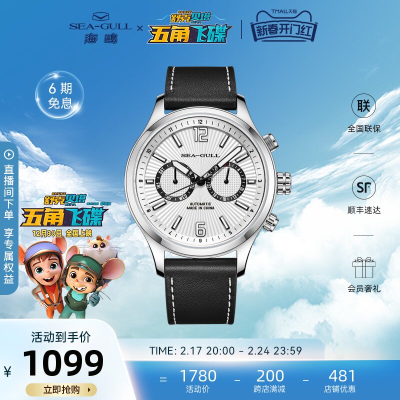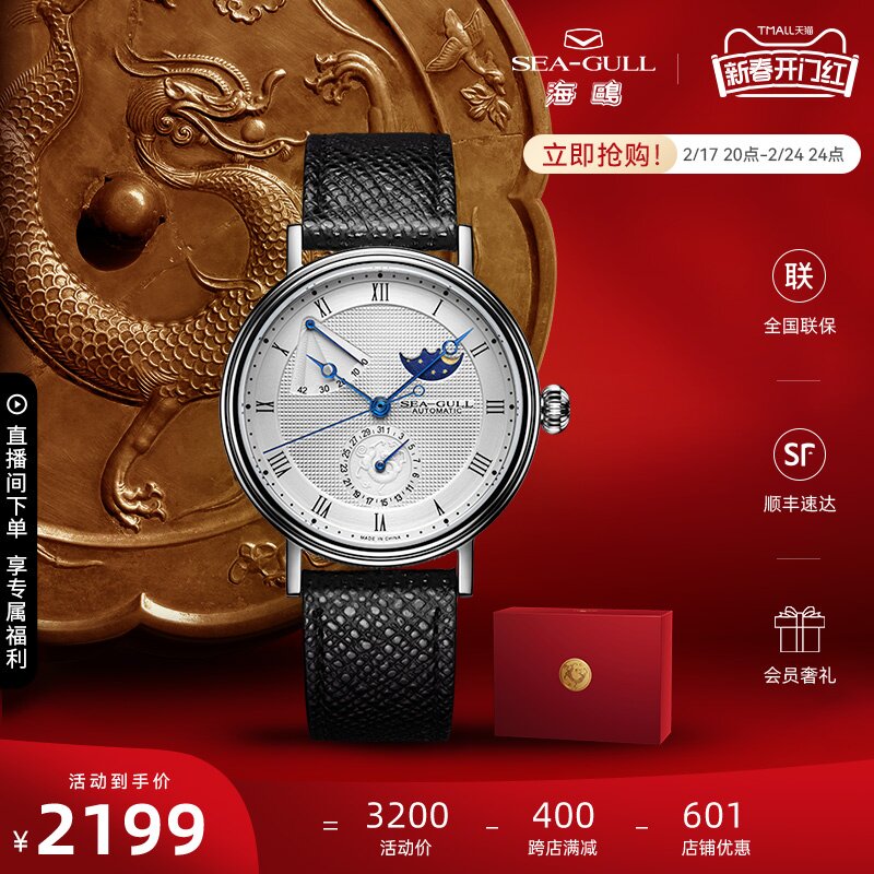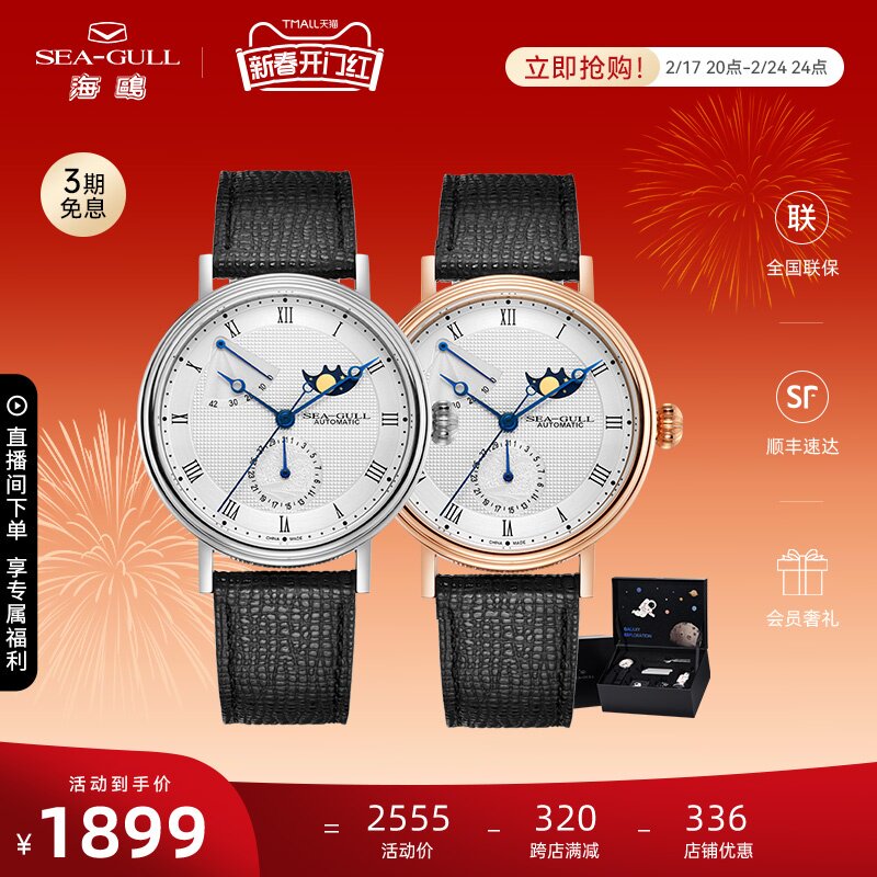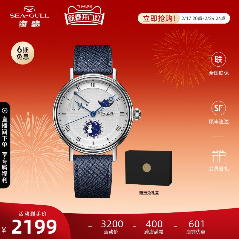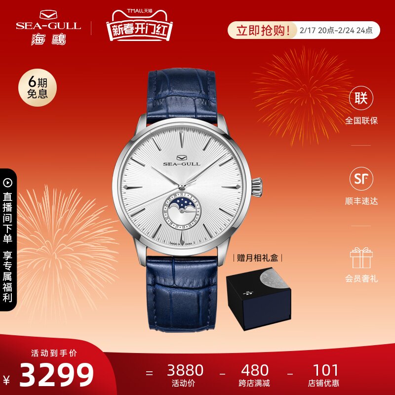 【新品】海鸥手表男士ST18多功能月相机械表商务休闲商务腕表1135