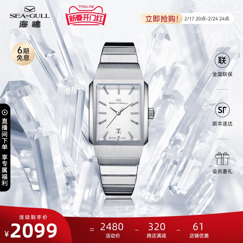 【新年礼物】海鸥手表女款精致轻奢冰糖小方表机械表女表6169L