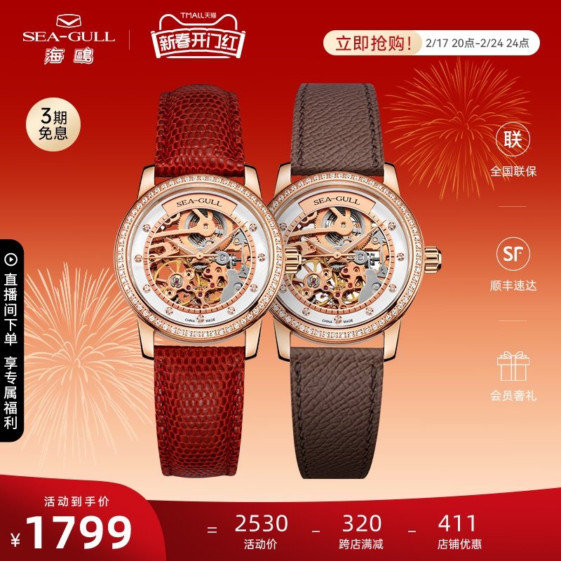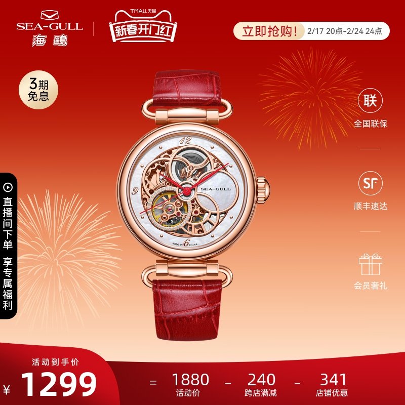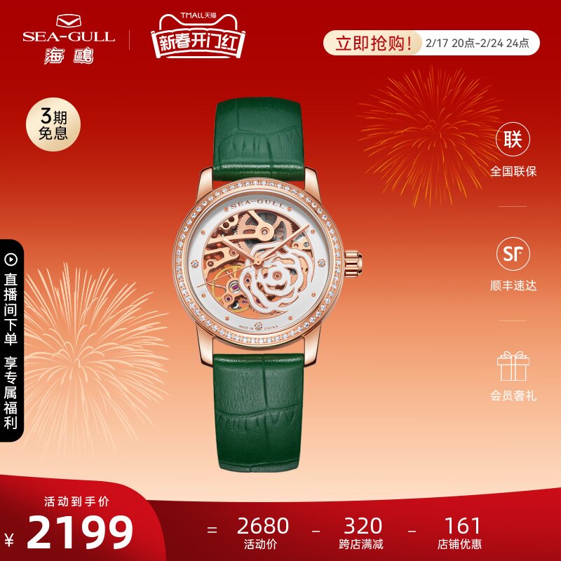 【新年礼物】海鸥手表女机械表时光女神镂空气质女款腕表6002