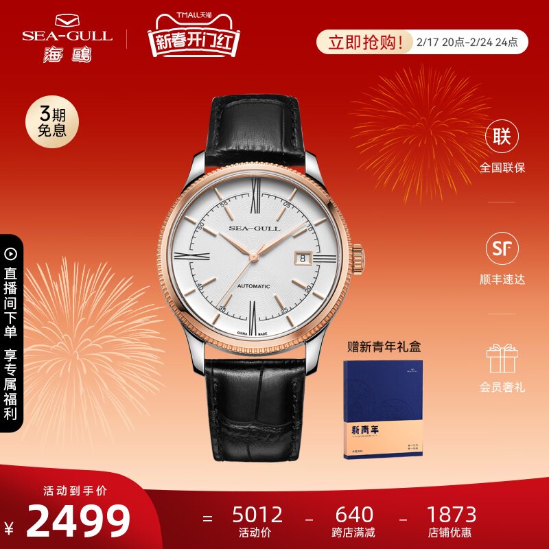 【新年礼物】海鸥手表男款小三针机械表商务防水男表国民海帆6075