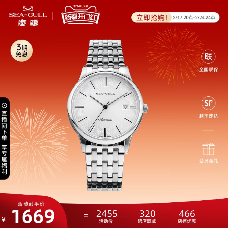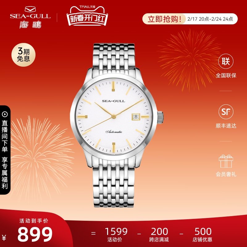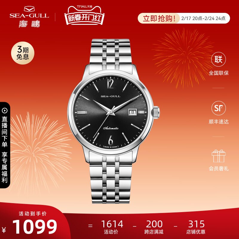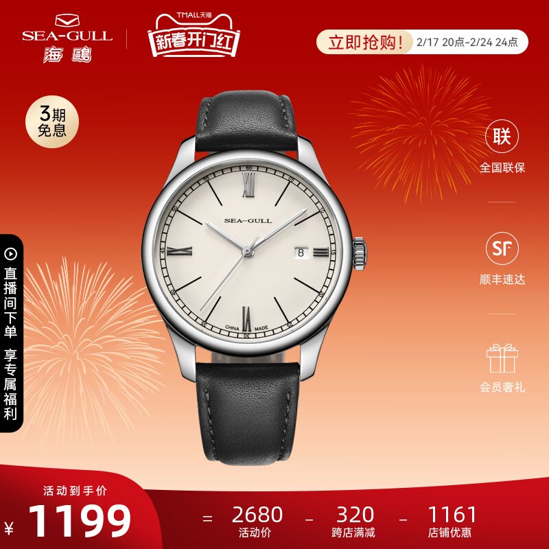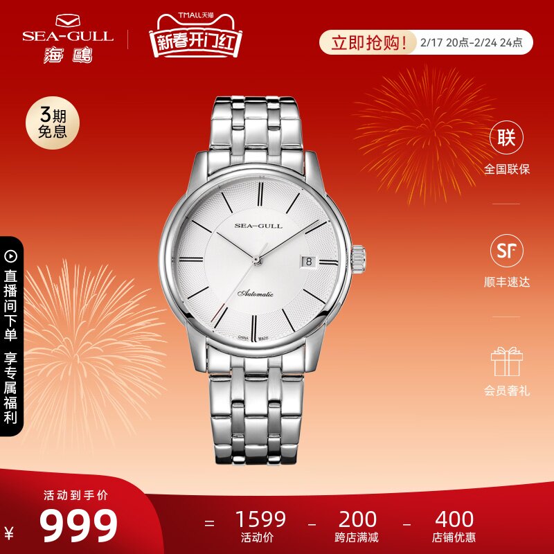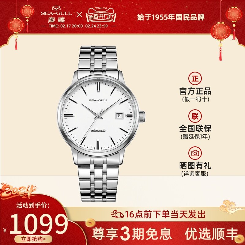 【新年礼物】海鸥手表国民商务简约男士手表男款机械表钢带表1050