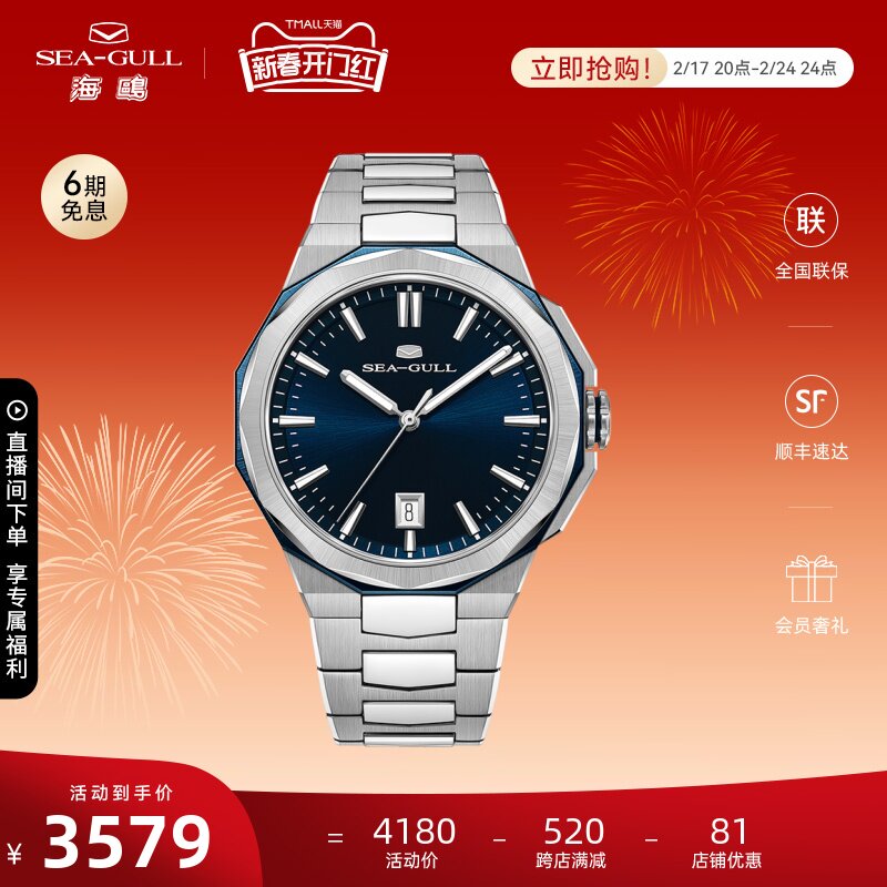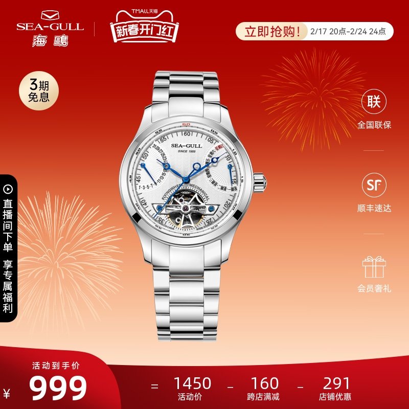 海鸥手表男士机械表钢带防水巨匠系列男款潮流腕表飞轮传奇M160S