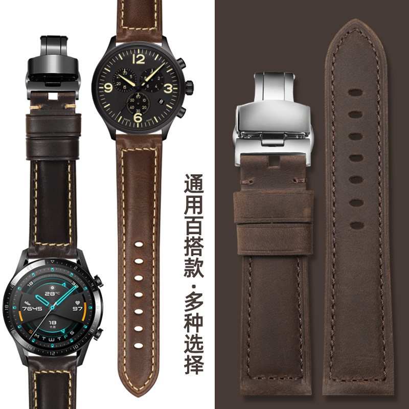 真皮手表带男女 通用款复古牛皮表带蝴蝶扣手表链适用华为watch gt2/3荣耀天梭浪琴卡西欧美度西铁城精工海鸥