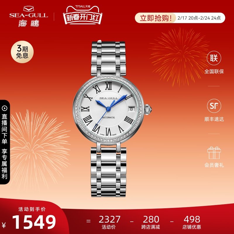 【新年礼物】海鸥手表女简约时尚镂空腕表水钻钢带机械女表6120
