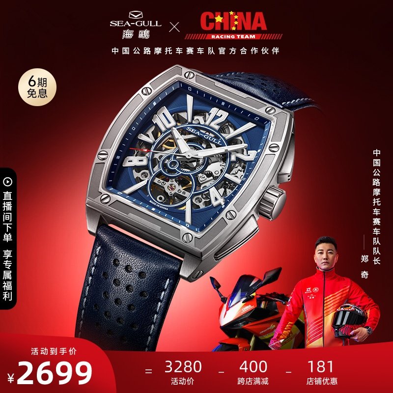 海鸥手表酒桶型全镂空男士手表男款机械表机车男表街霸系列6138