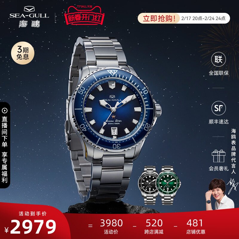 海鸥手表男表海洋之星深度潜水表经典防水机械表手表男士腕表