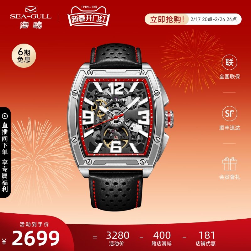 【新年礼物】海鸥手表酒桶型镂空机械表男表潮流男士腕表6094