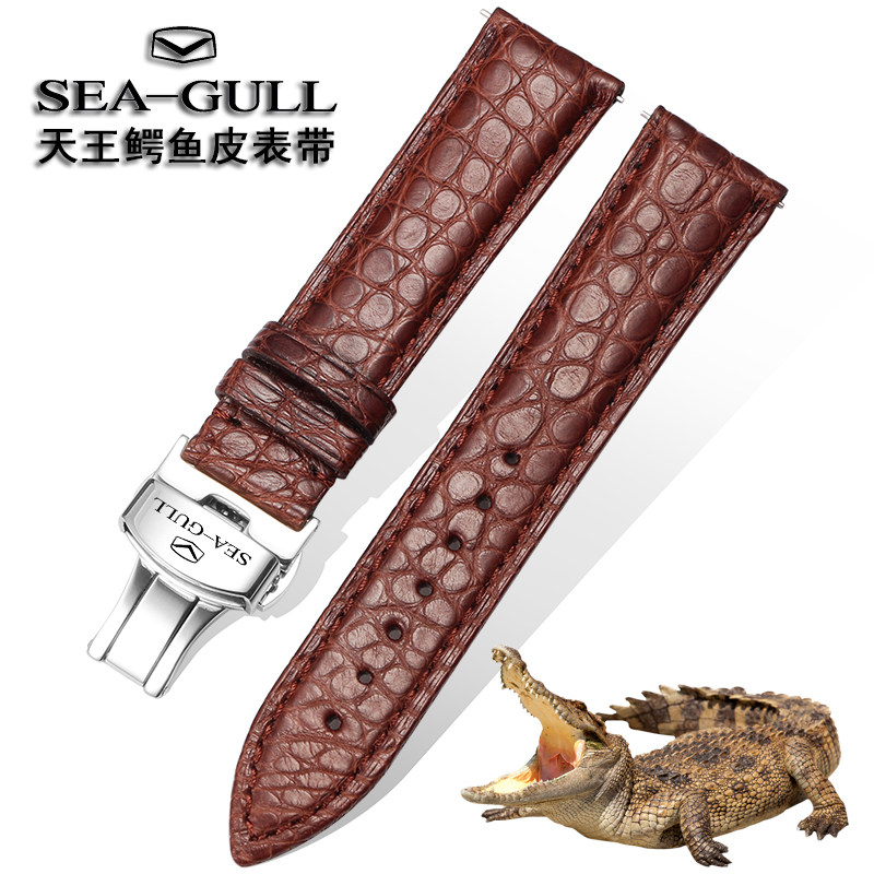 海鸥真皮鳄鱼皮手表带男女 蝴蝶扣表链陀飞轮多功能系列20 22mm