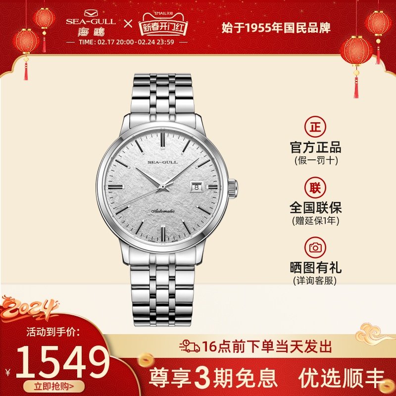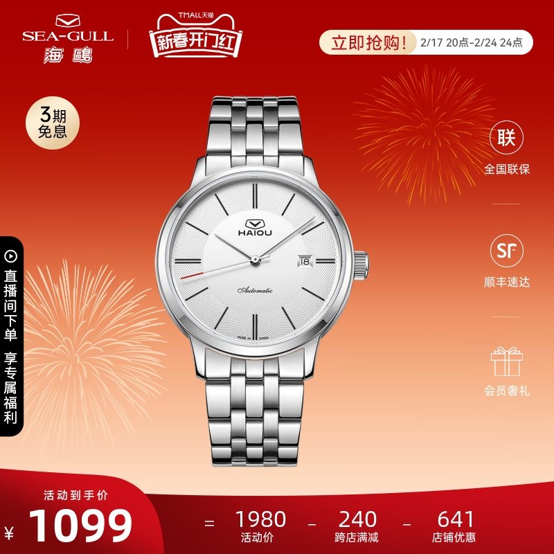 【新年礼物】海鸥手表国民商务简约男士手表男款机械表钢带表1050