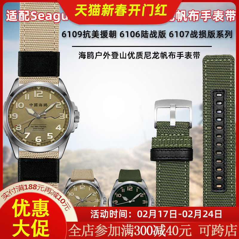 适配Seagull海鸥志愿五四军表6109/6106/6107男尼龙帆布手表带24m