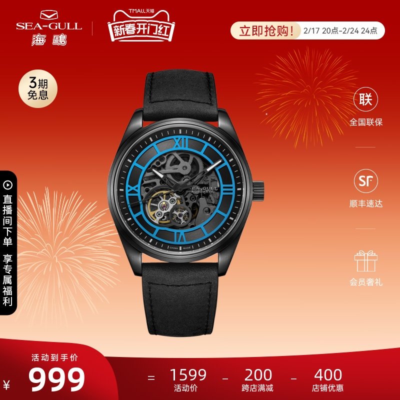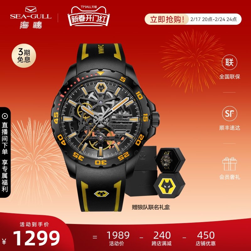 Seagull海鸥手表X狼队联名手表国潮运动双面镂空自动机械表男士