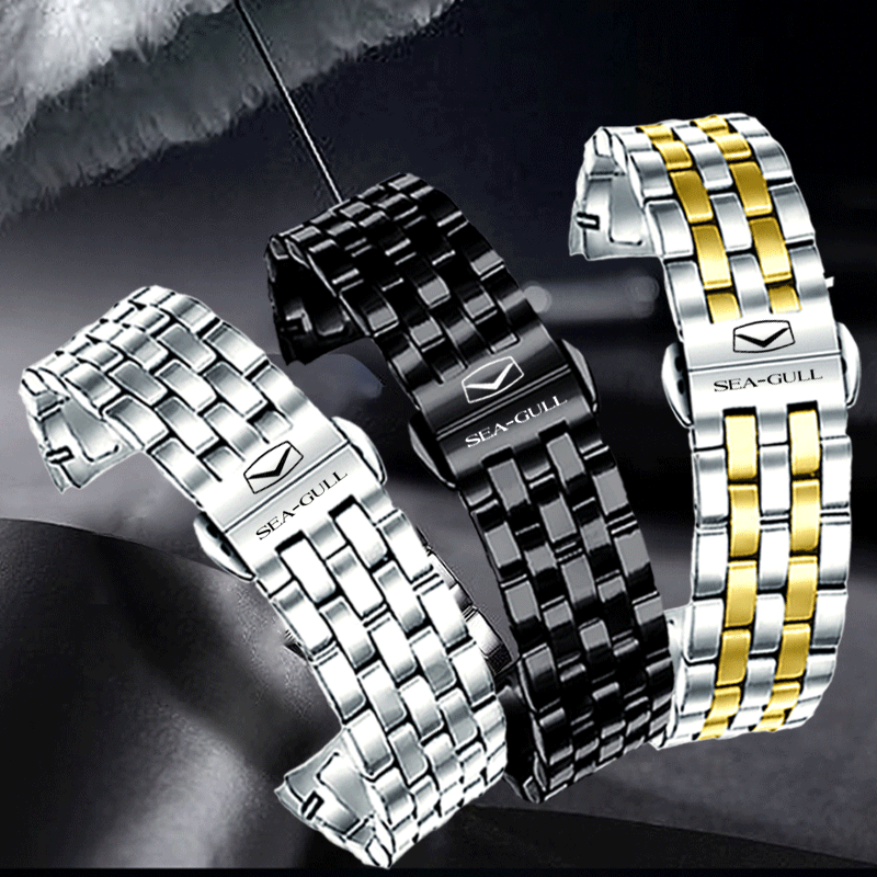 海鸥手表带钢带男原装海洋之星实心精钢女蝴蝶扣表链配件18 20mm