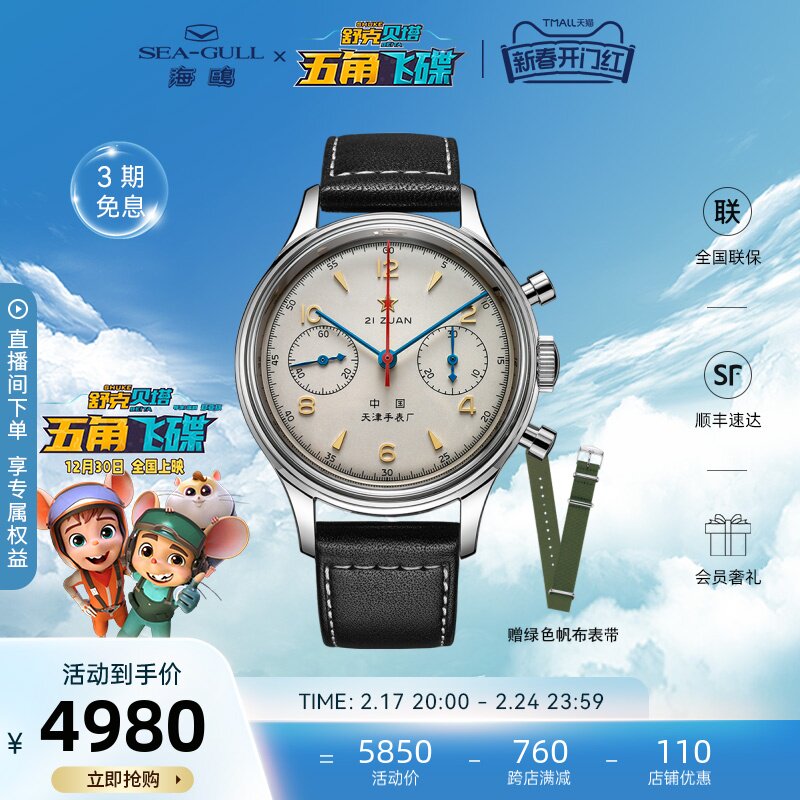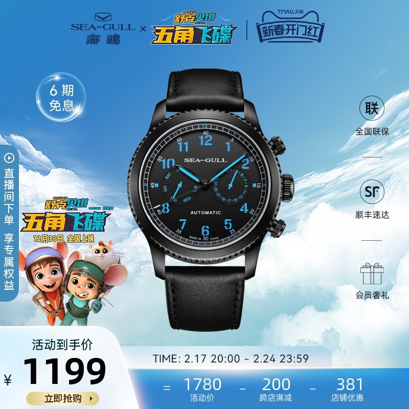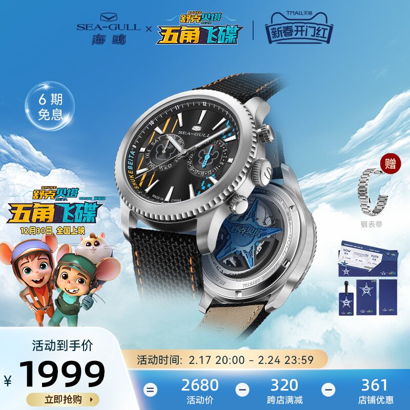 新品海鸥手表×舒克贝塔联名飞行员机械男表1059超时空飞行特别版