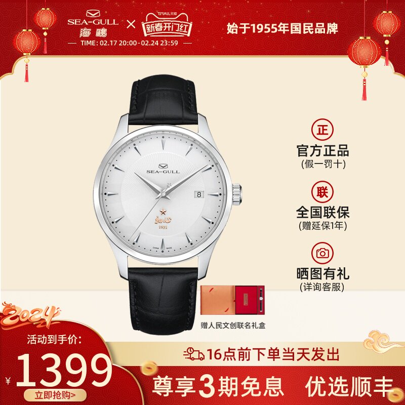 海鸥手表男士自动机械表纪念款时尚单历防水腕表1921初芯礼盒
