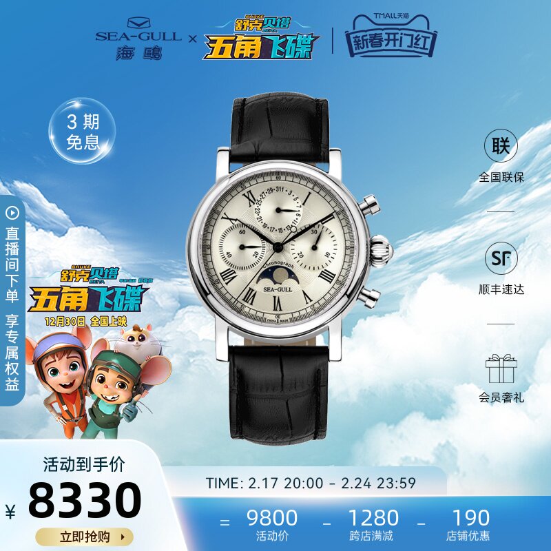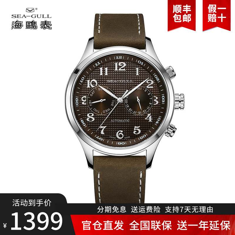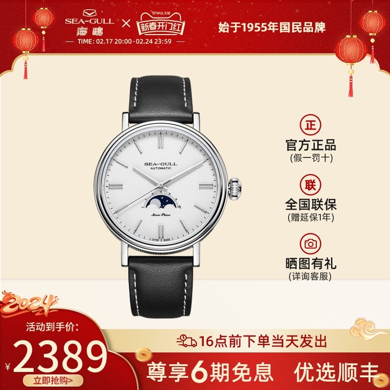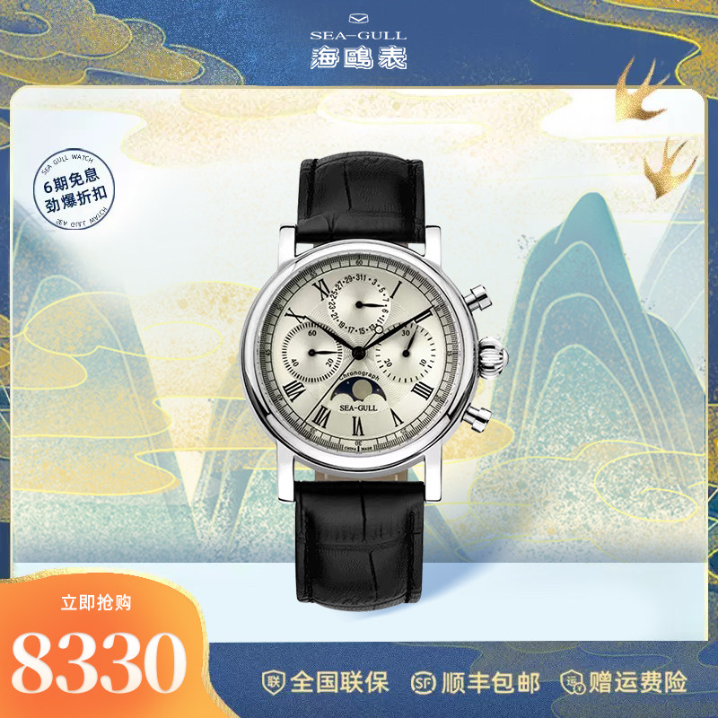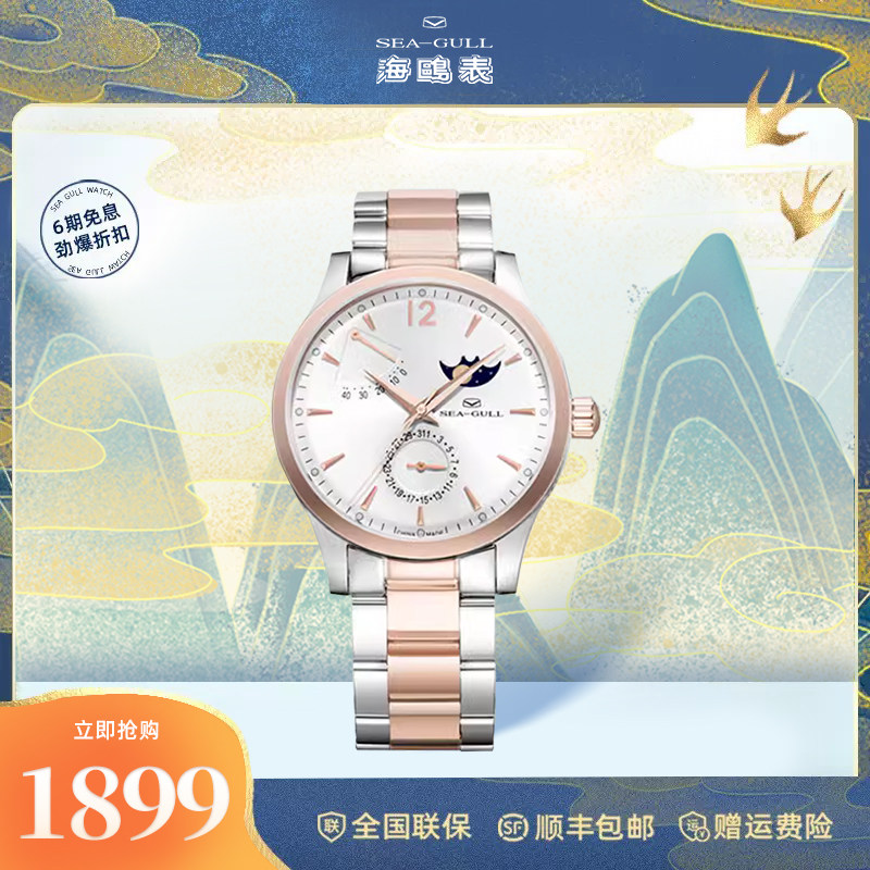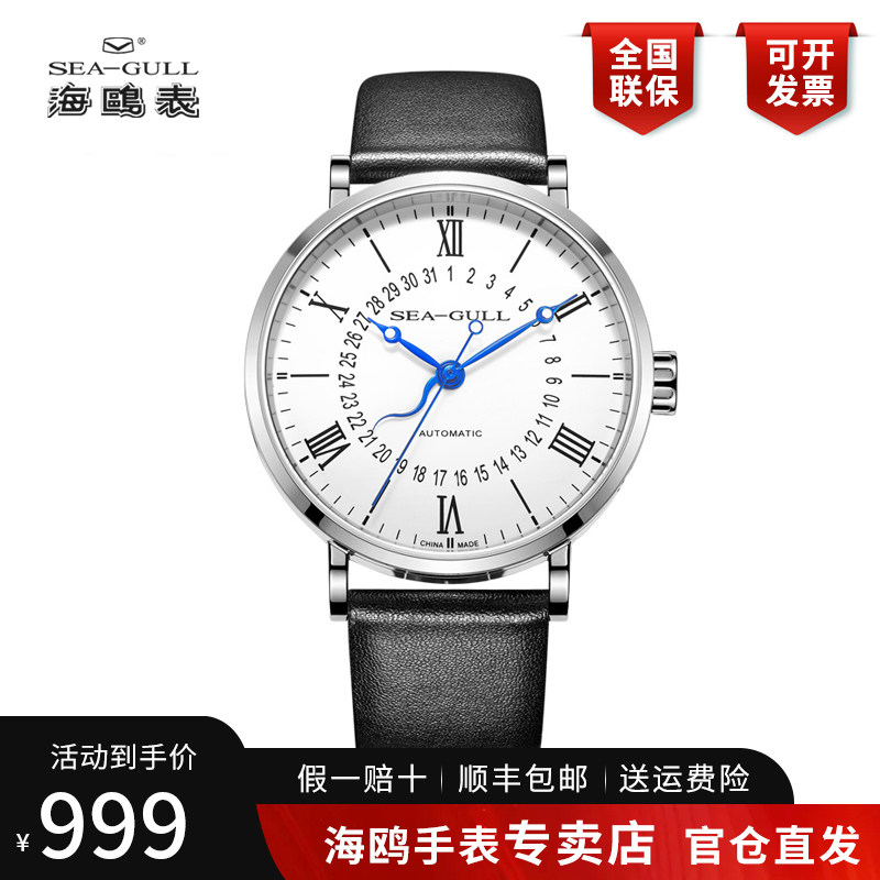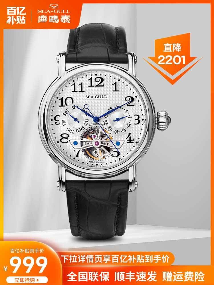 海鸥手表男士月相表正品多功能商务休闲自动机械皮带防水机械腕表