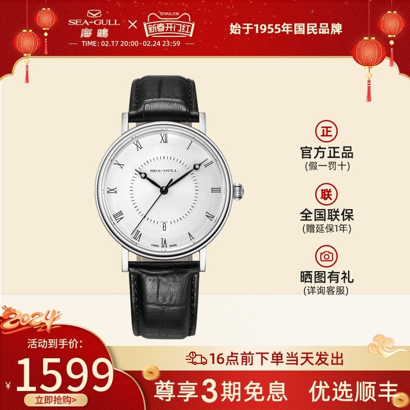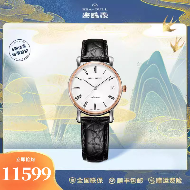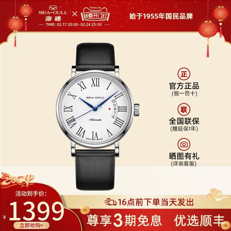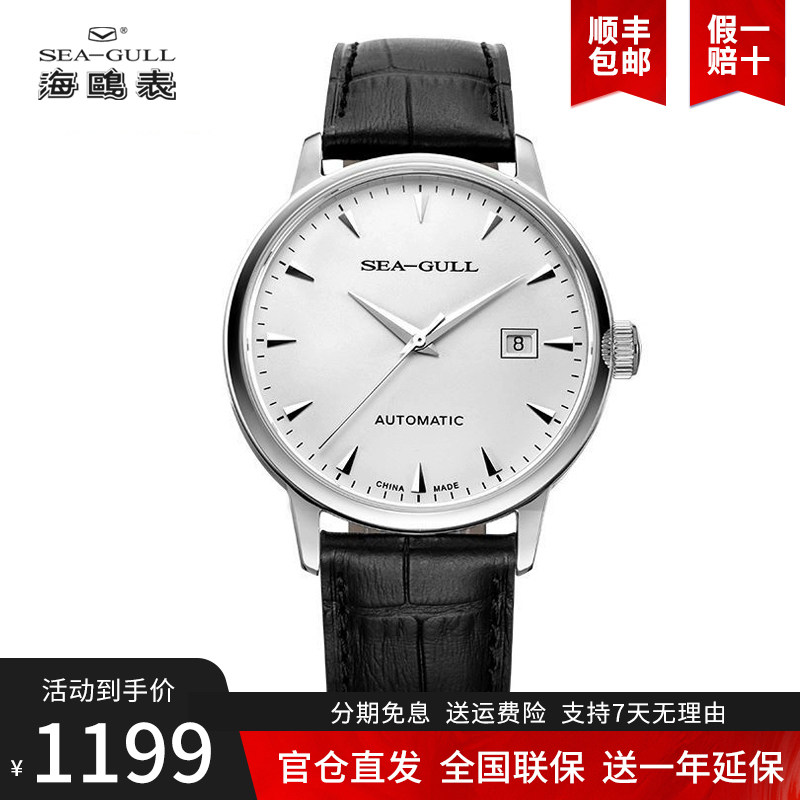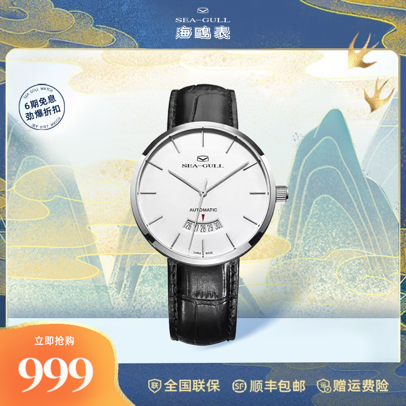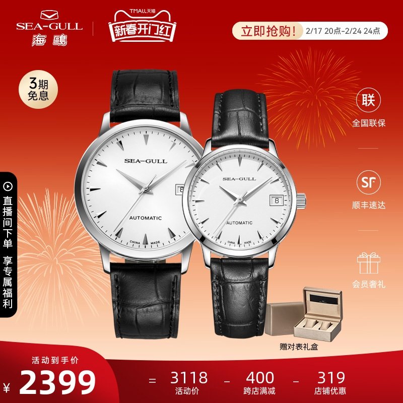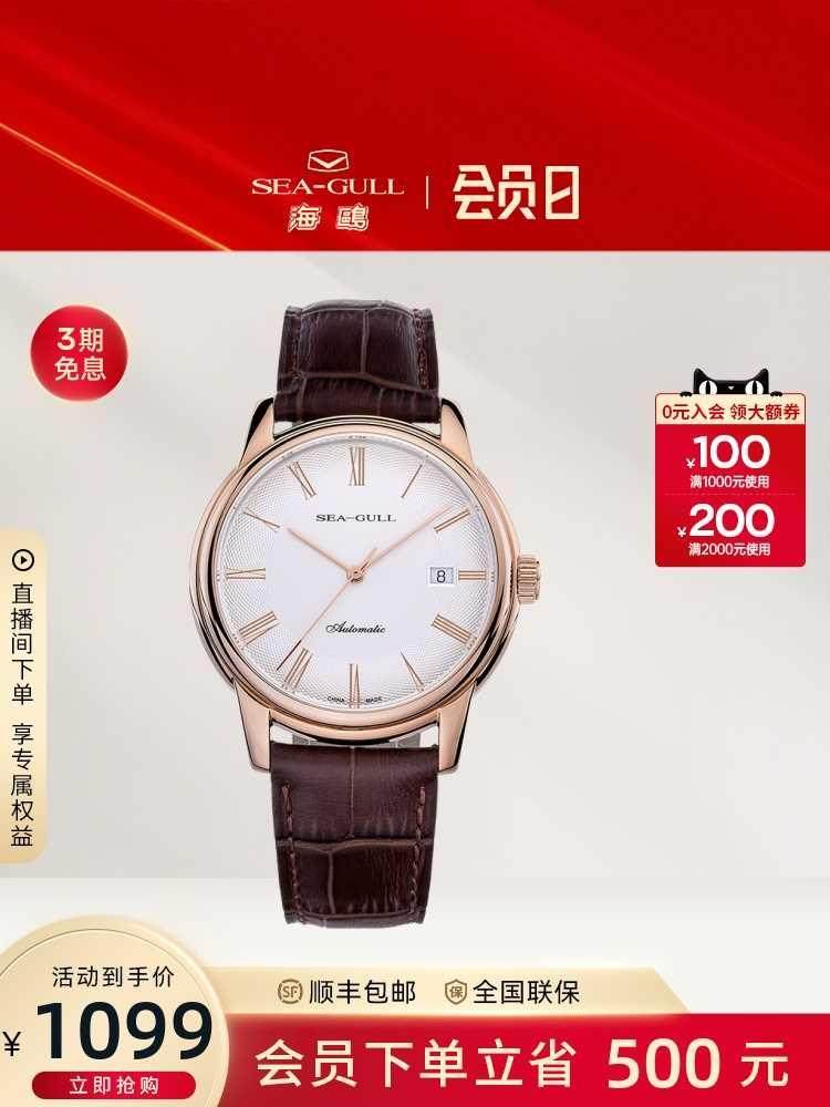 海鸥手表商务情侣对表自动机械表皮带日历腕表519.405新年礼