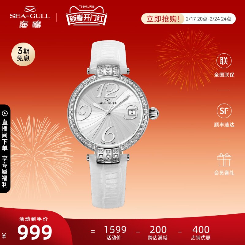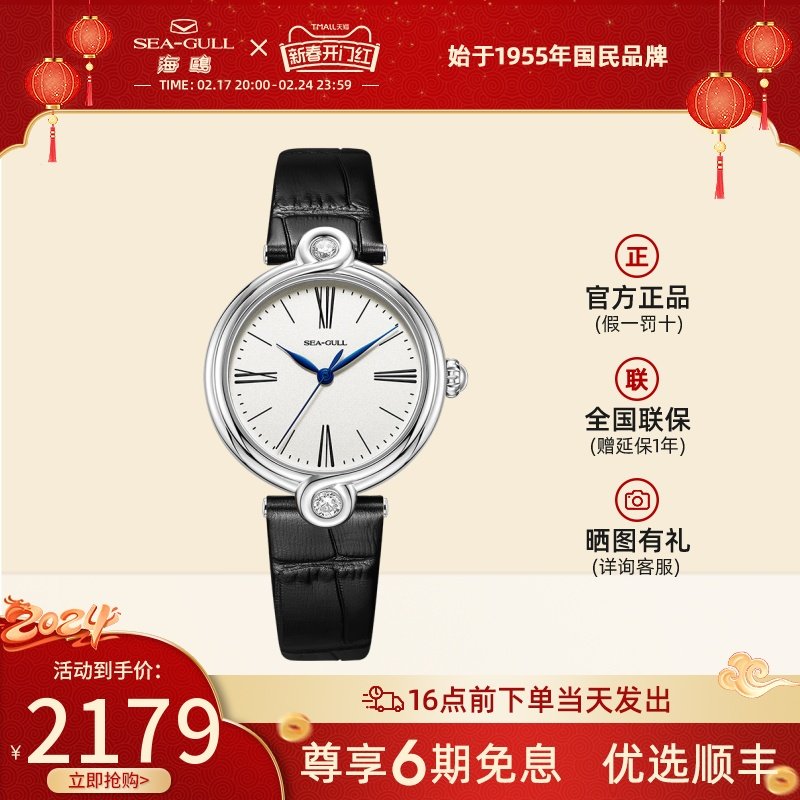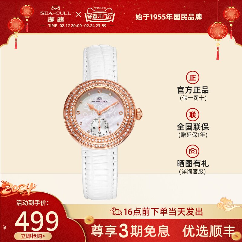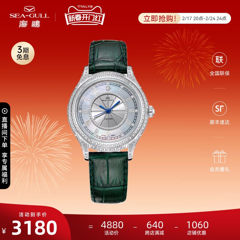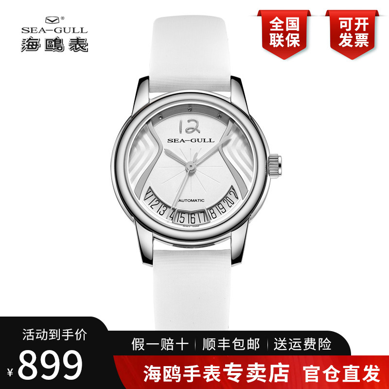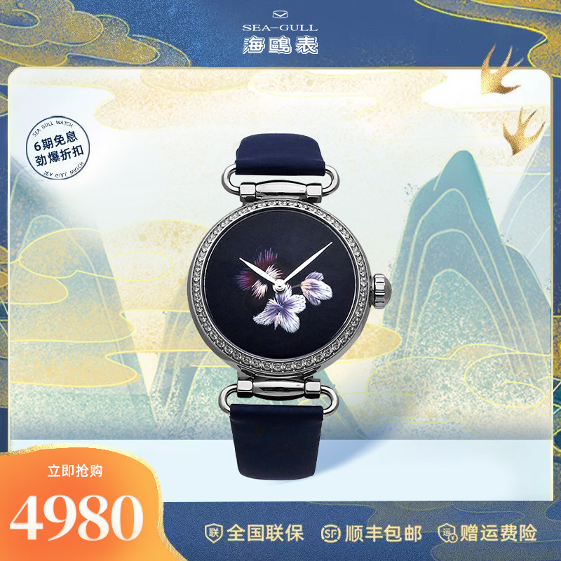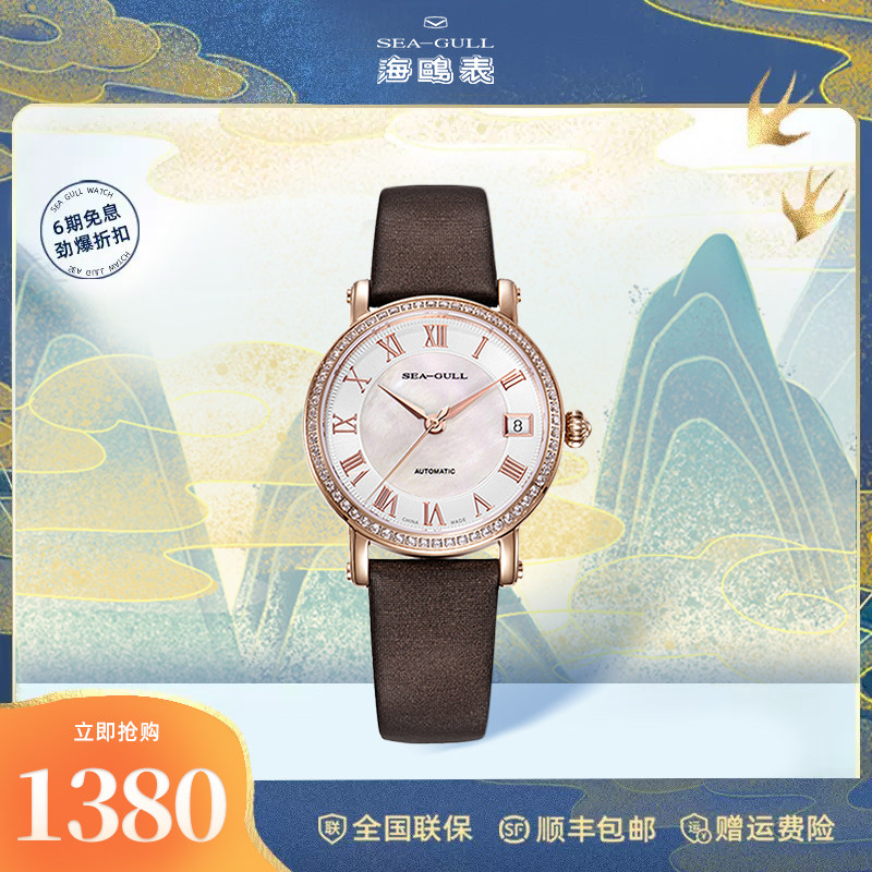 正品海鸥手表女士镶钻皮带女表贝母简约优雅自动机械腕表719.387