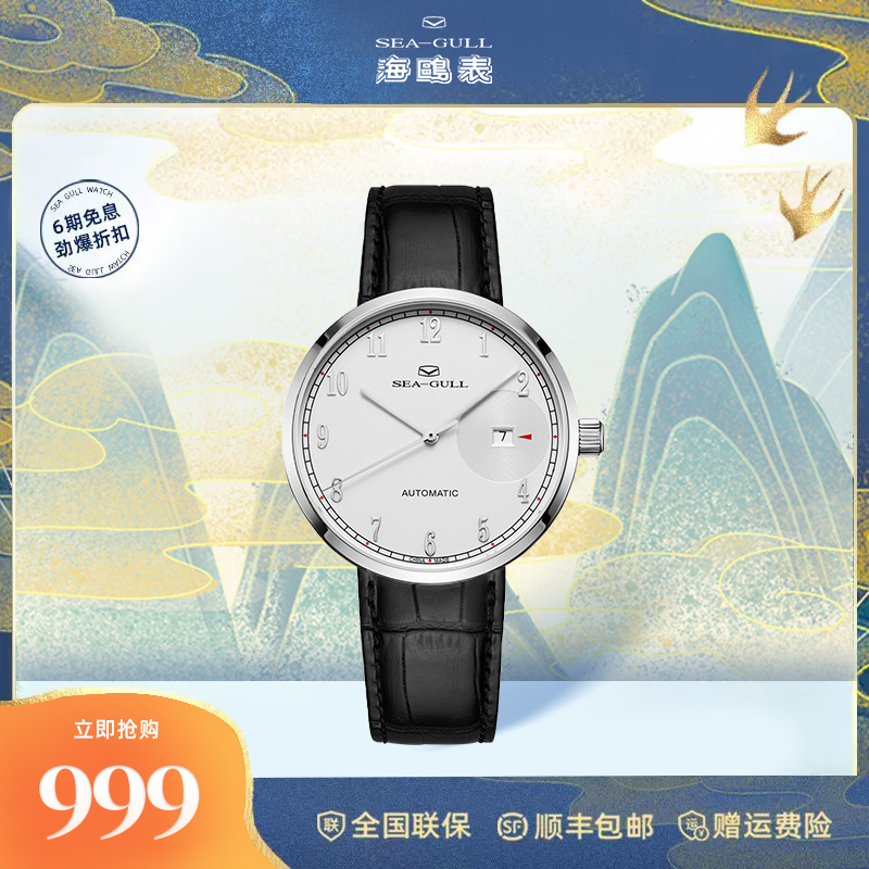 【新品】海鸥表商务男士自动机械表日历皮带简约男表6164