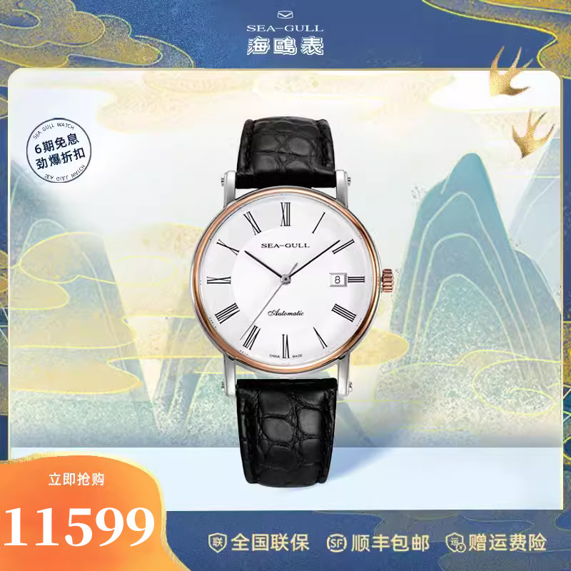 Seagull海鸥手表男单历皮带防水18K金自动机械表1026G传承系列