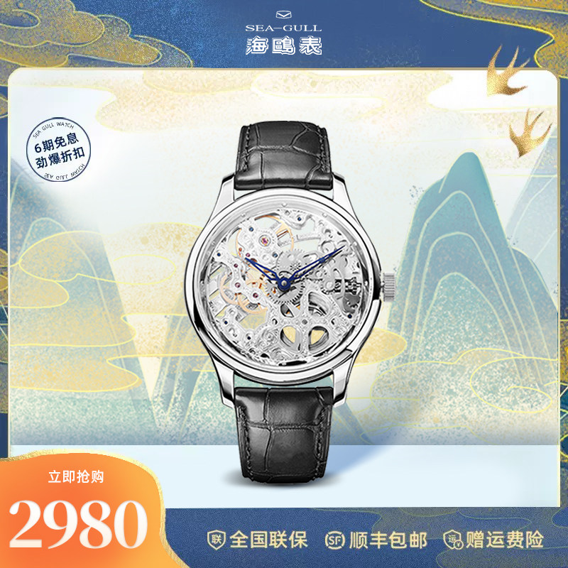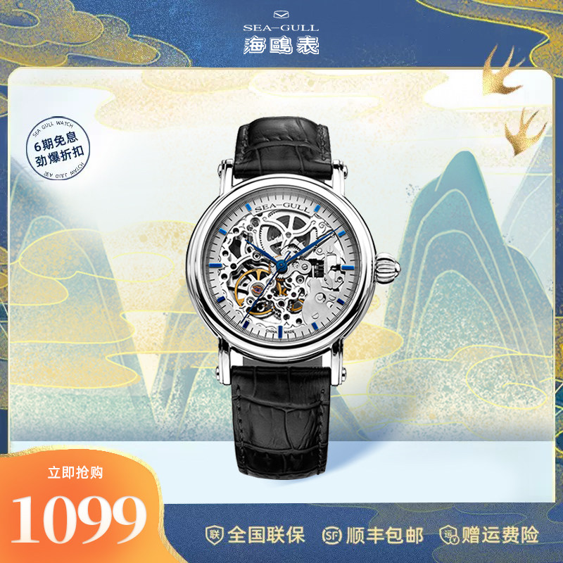 海鸥手表男士镂空皮带全自动机械表潮流防水多功能男表819.626