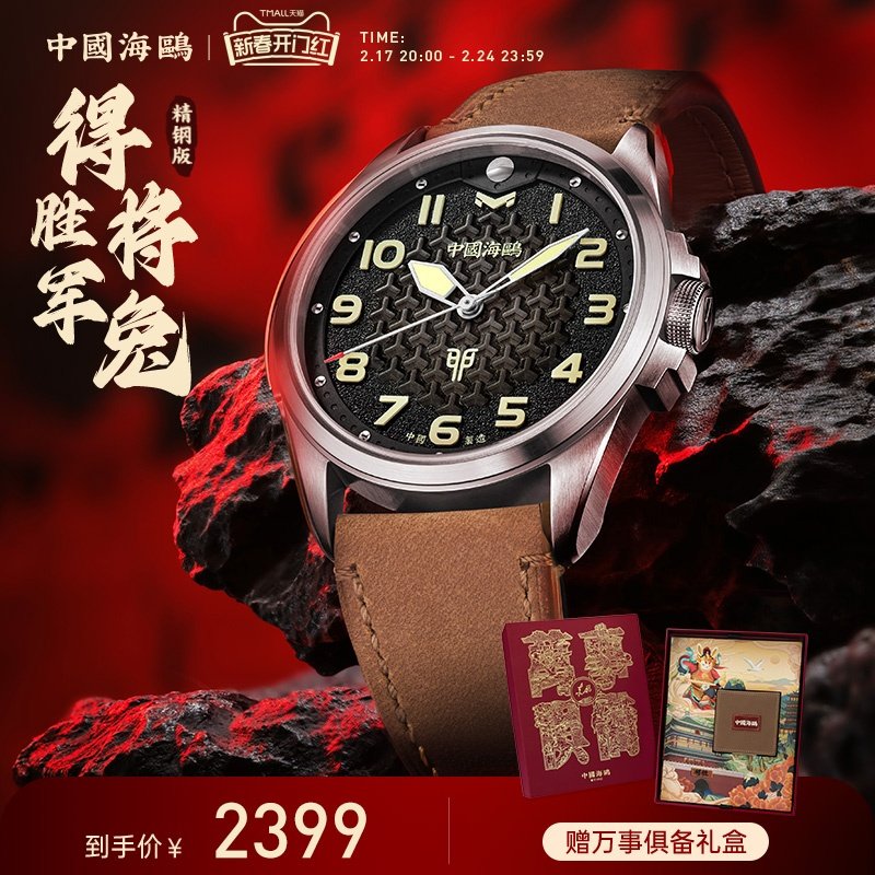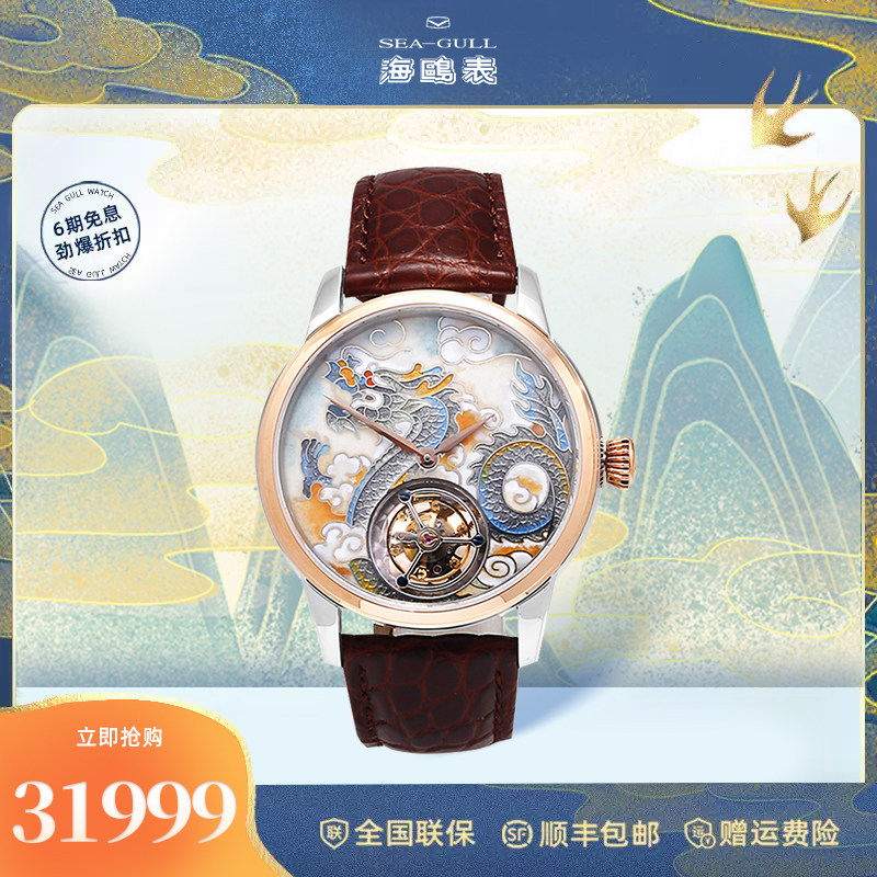 海鸥珐琅龙手动陀飞轮男表官方正品鳄鱼皮带机械腕表218.98.7024G