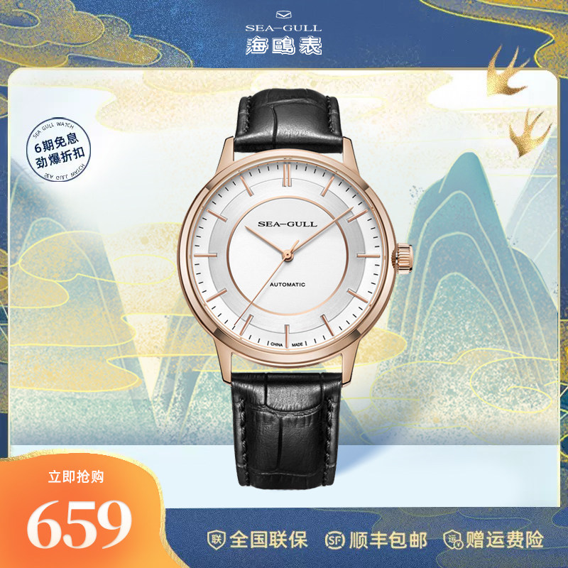 Seagull海鸥手表商务皮带自动机械表简约男表18K金619.517