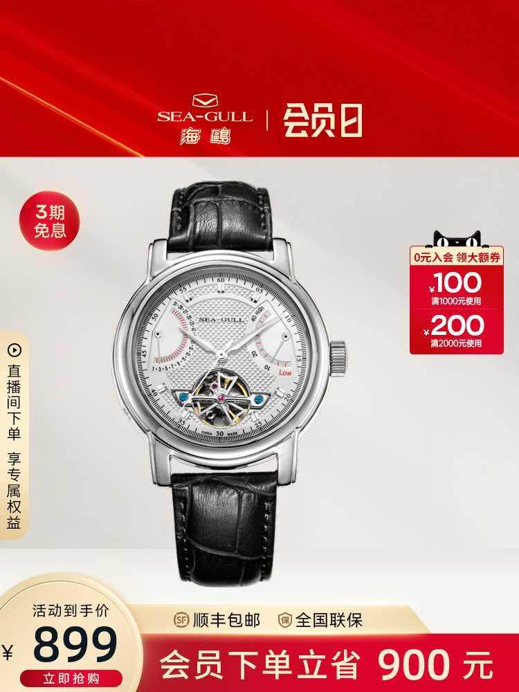 正品海鸥陀飞轮手表男机械表多功能男士皮带手表 518.937