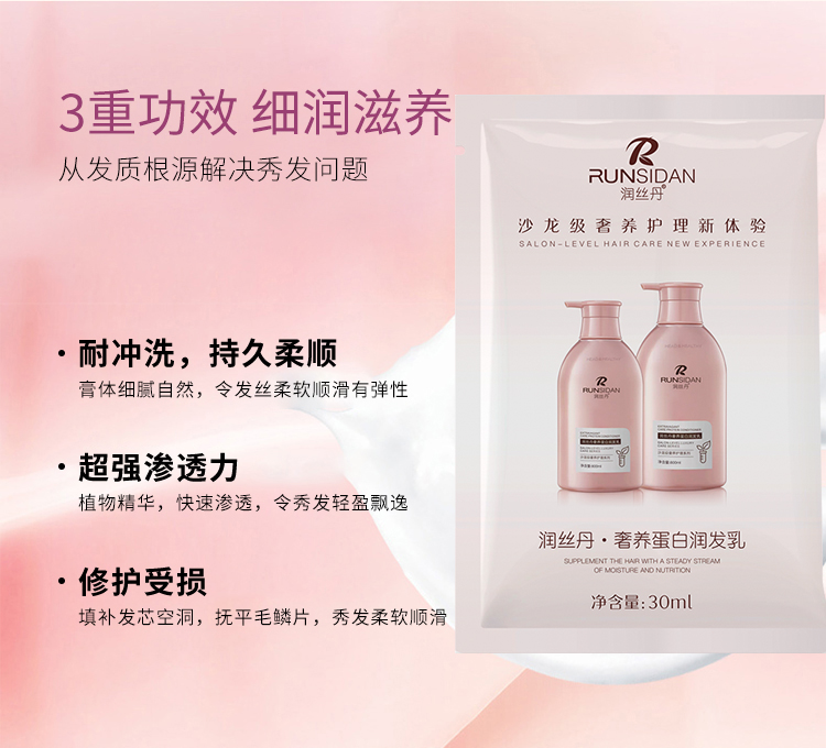 润丝丹蛋白润发乳30ml*10袋装护发素柔顺滑补水修复干枯毛躁发膜