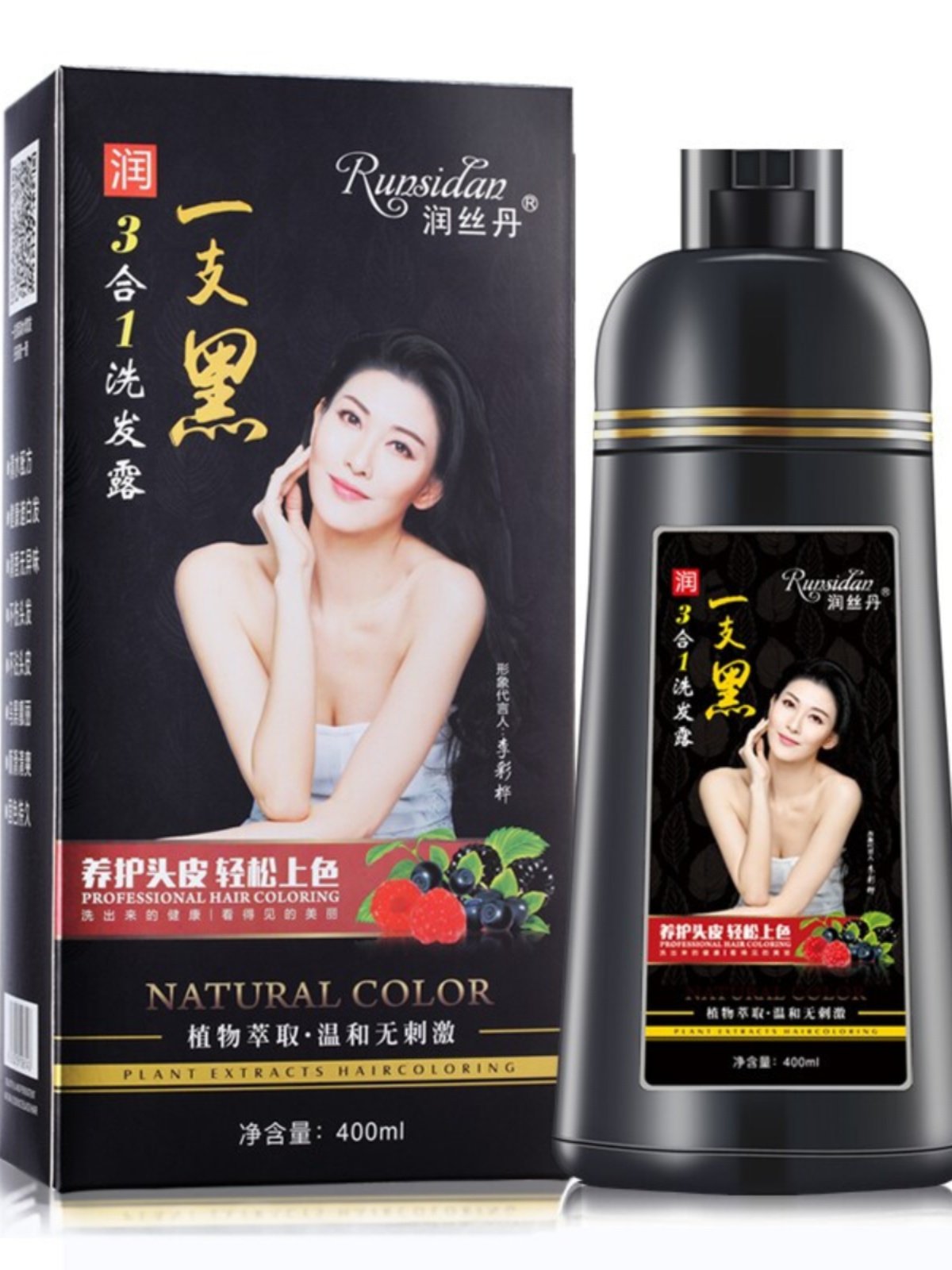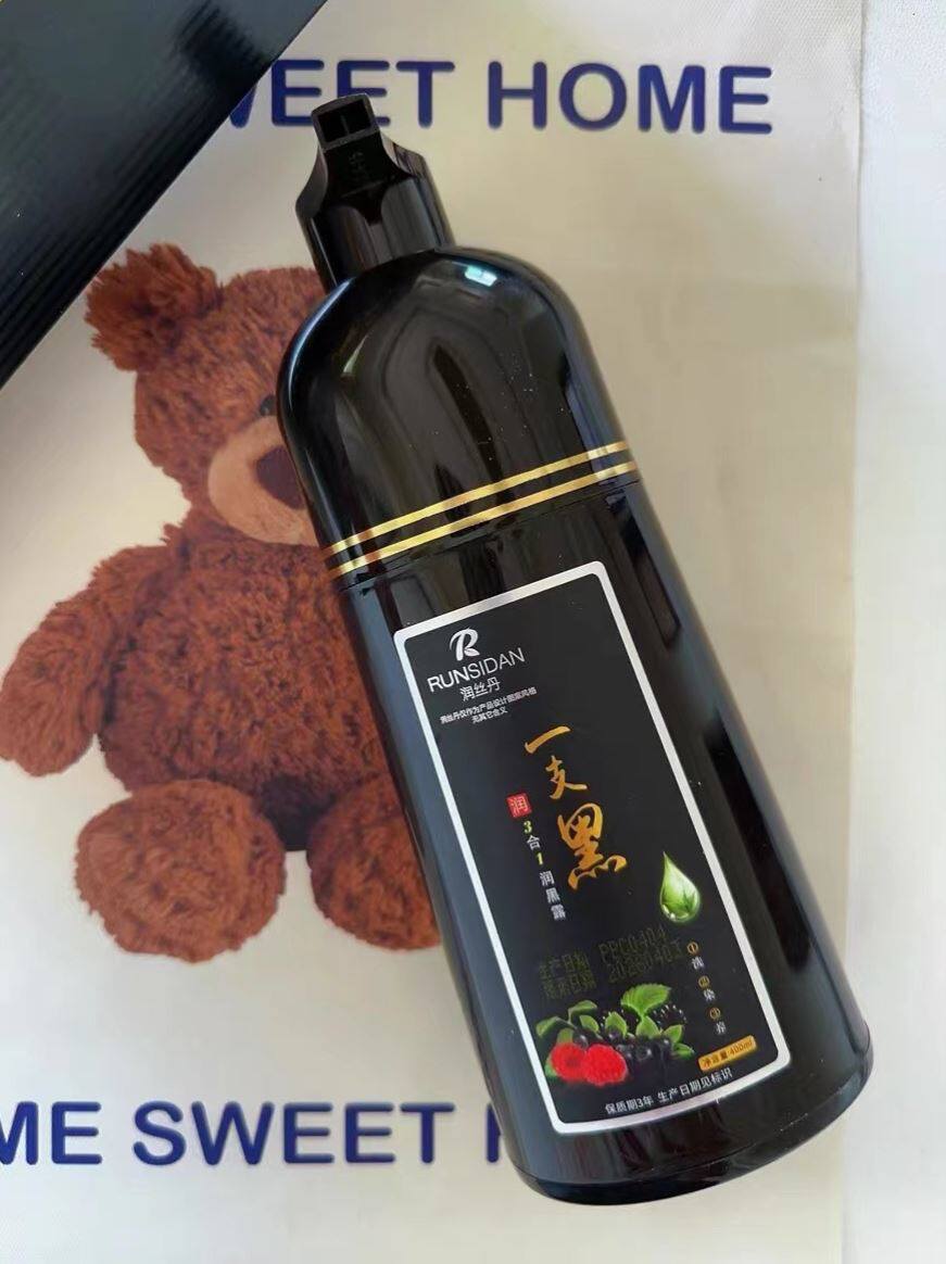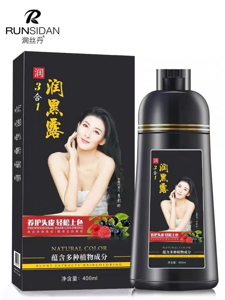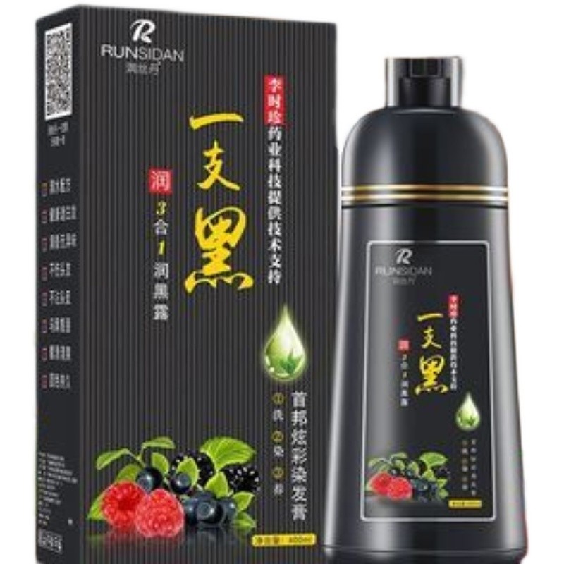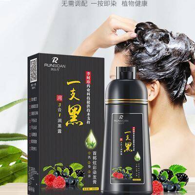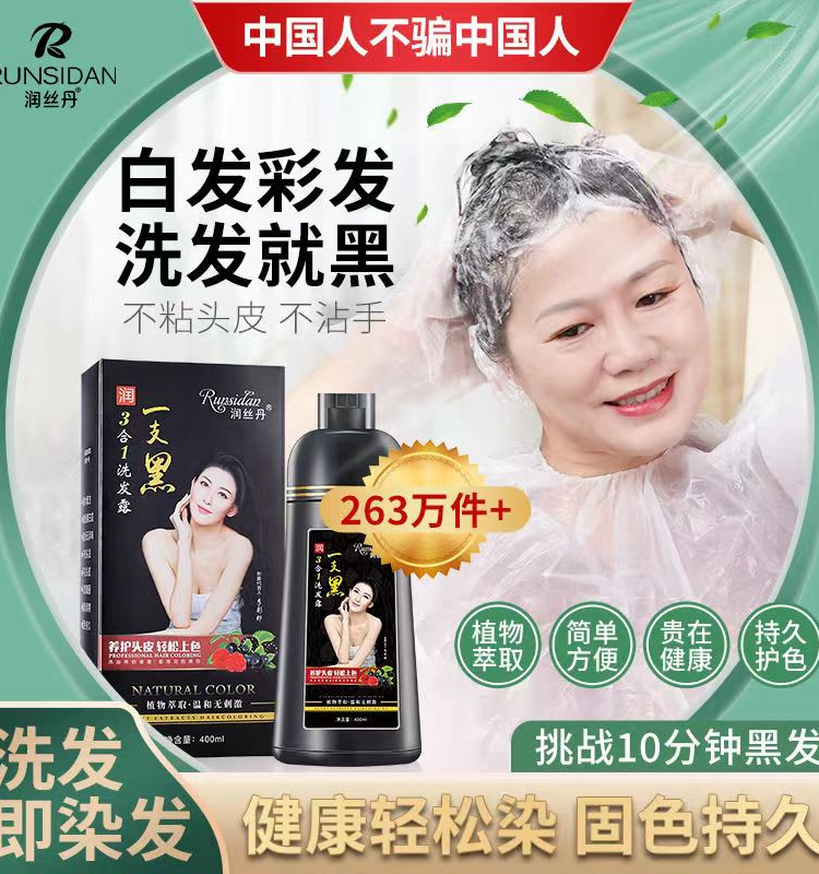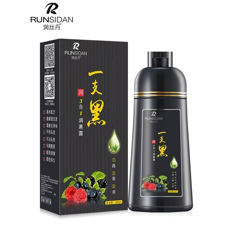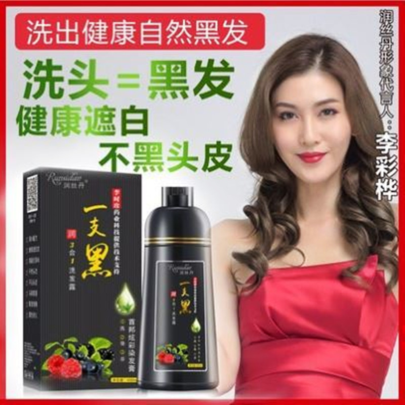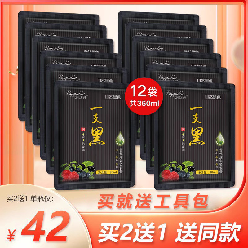 正品润丝丹一支黑染发剂植物黑发盖白家染洗发水染发膏健康三合一