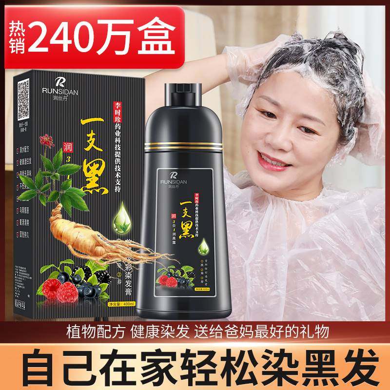 润丝丹一支黑染发剂植物正品膏纯自己在家染女男洗发水官方一洗黑