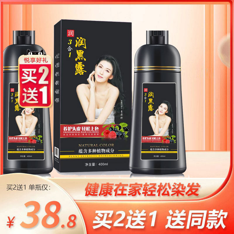 润丝丹黑色染发剂植物纯润黑露洗发水天然无刺激染发膏清水黑发膏