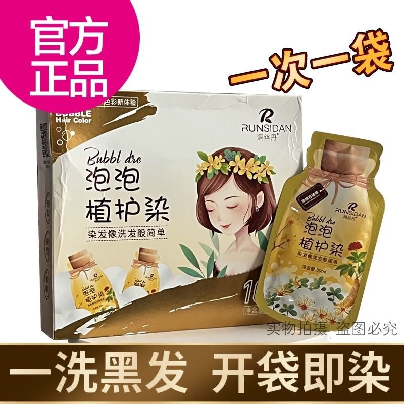 润丝丹植物泡泡染发剂自然黑色染发膏遮白发一支黑洗发水