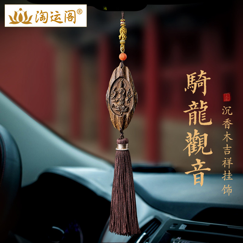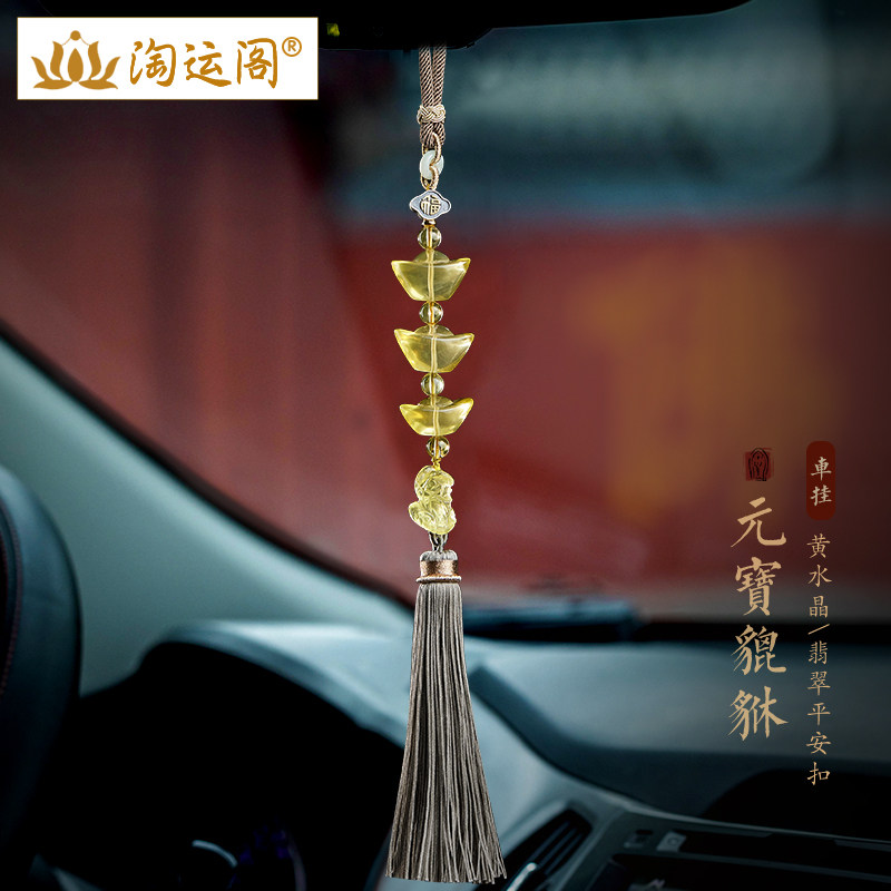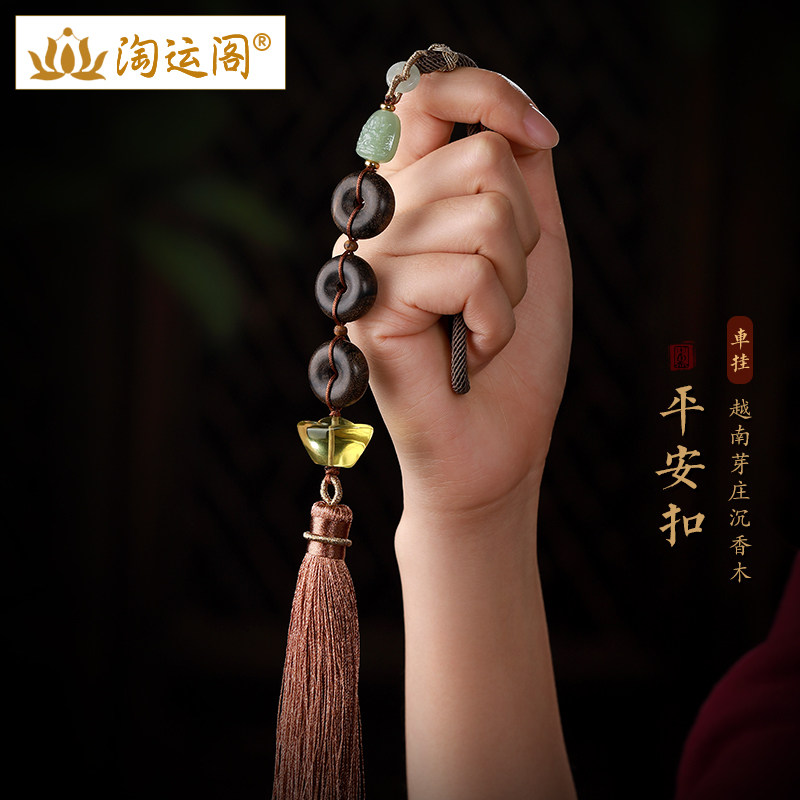 越南沉香木平安扣汽车挂件黄水晶元宝和田玉本命佛后视镜流苏吊坠