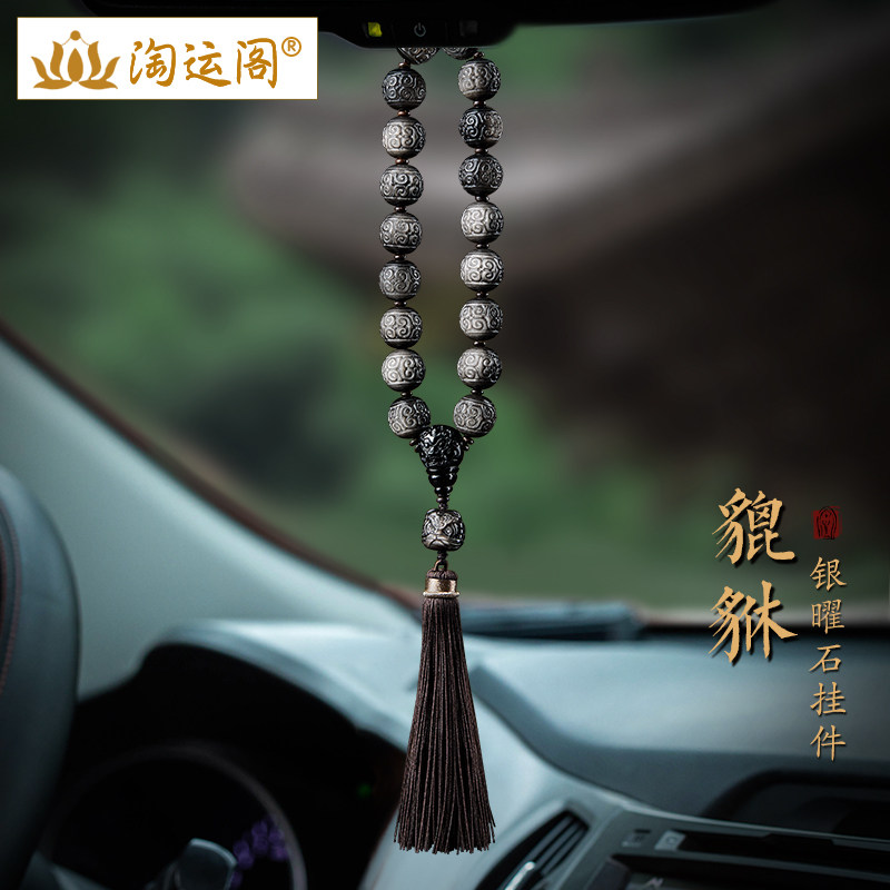 银曜石回纹珠汽车挂件2024新款车内吊坠黑曜石貔貅车载后视镜挂饰