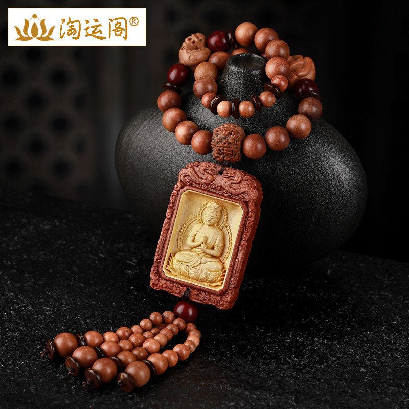 汽车后视镜挂件属兔文殊菩萨木质车挂车内吊饰挂饰后视镜吊坠男士