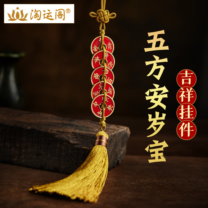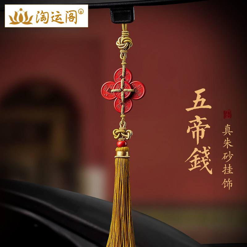 朱砂五帝钱汽车挂件2024新款如意结流苏车内吊饰后视镜挂饰装饰品