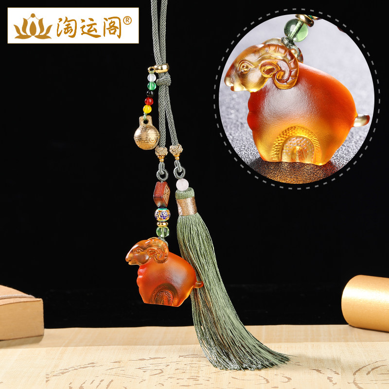 生肖羊琉璃车挂属羊汽车挂件车内吊饰平安吊坠男后视镜装饰品女