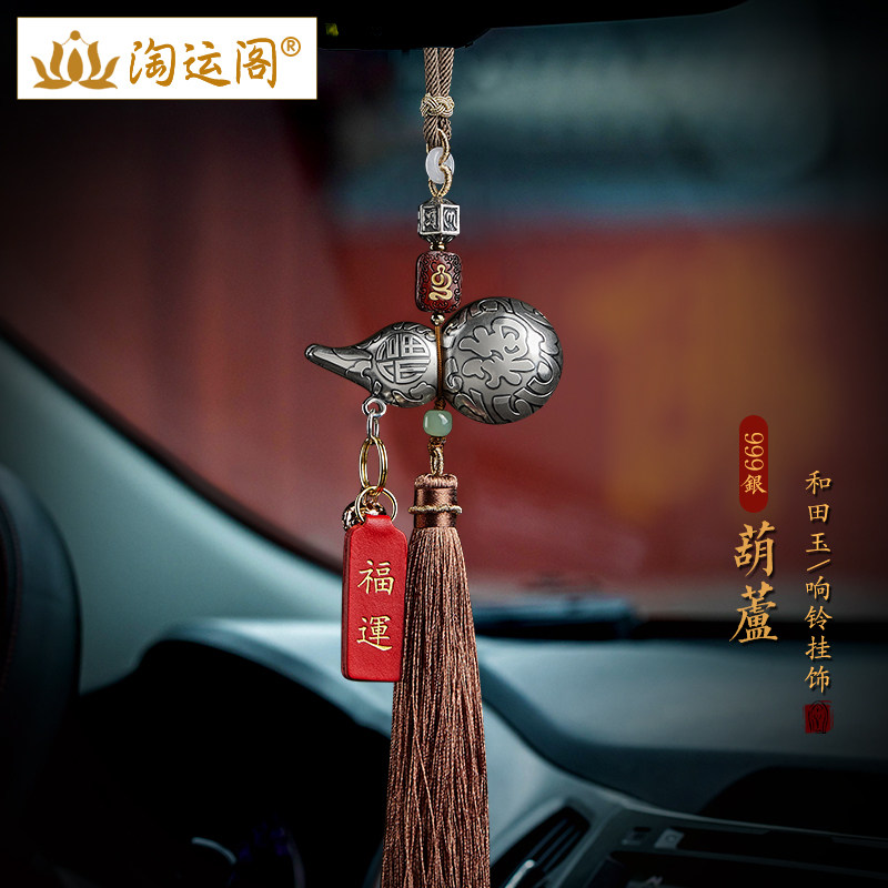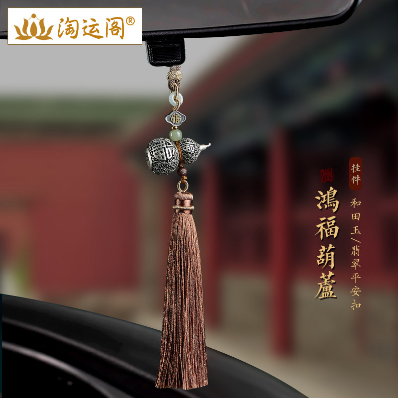 纯银镂空葫芦汽车挂件车内吊饰翡翠平安扣福牌后视镜车载流苏挂饰