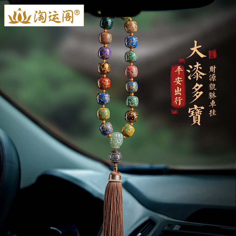 车挂大漆多宝十八子汽车挂件2024新款和田玉貔貅后视镜车内装饰品