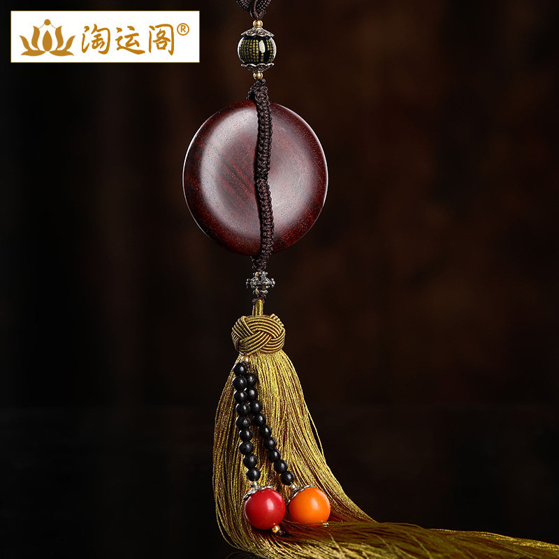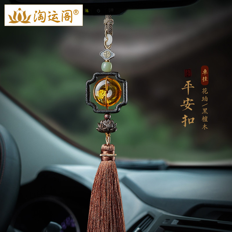 琥珀花珀平安扣汽车挂件车内吊坠檀木紫檀莲花流苏车载后视镜挂饰