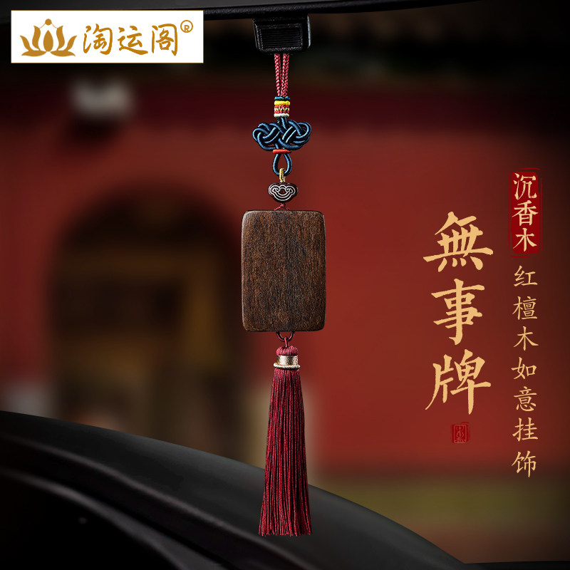 沉香木无事牌汽车挂件2024年新款车载车内吊饰流苏装饰后视镜挂饰
