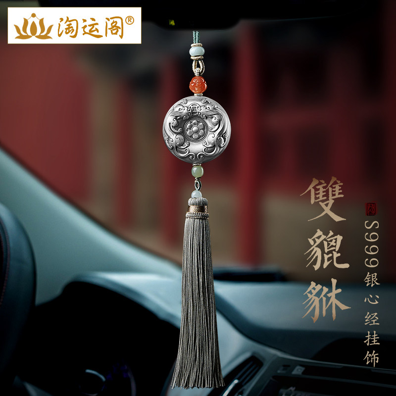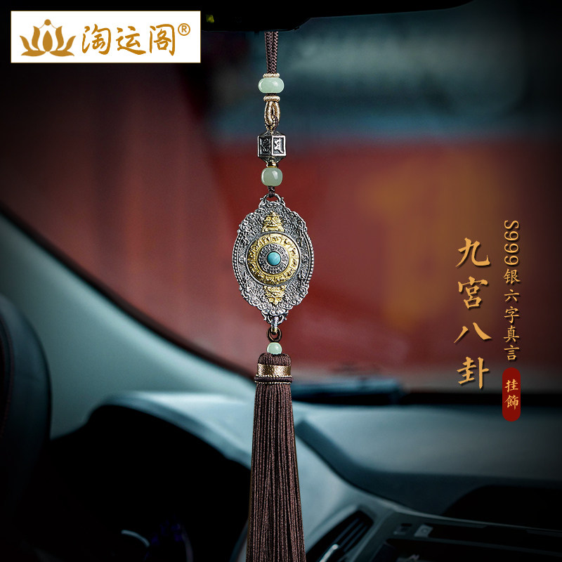 银铜九宫八卦牌汽车挂件2024新款纯银六字真言流苏后视镜车内吊坠