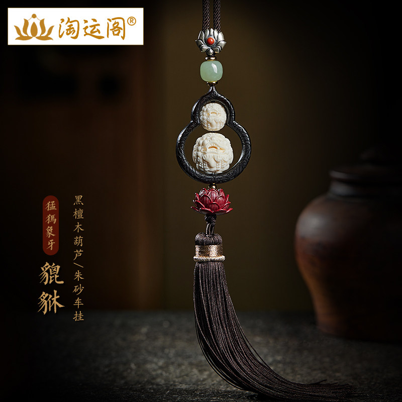 猛犸象牙双貔貅黑檀木葫芦汽车挂件朱砂莲花车内吊饰后视镜挂饰品