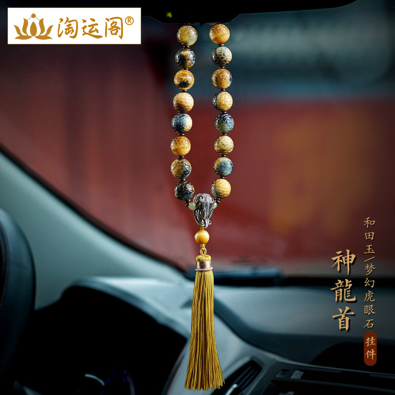 虎眼石汽车挂件车载档位珠龙鳞纹虎睛石银龙头车内后视镜流苏挂饰