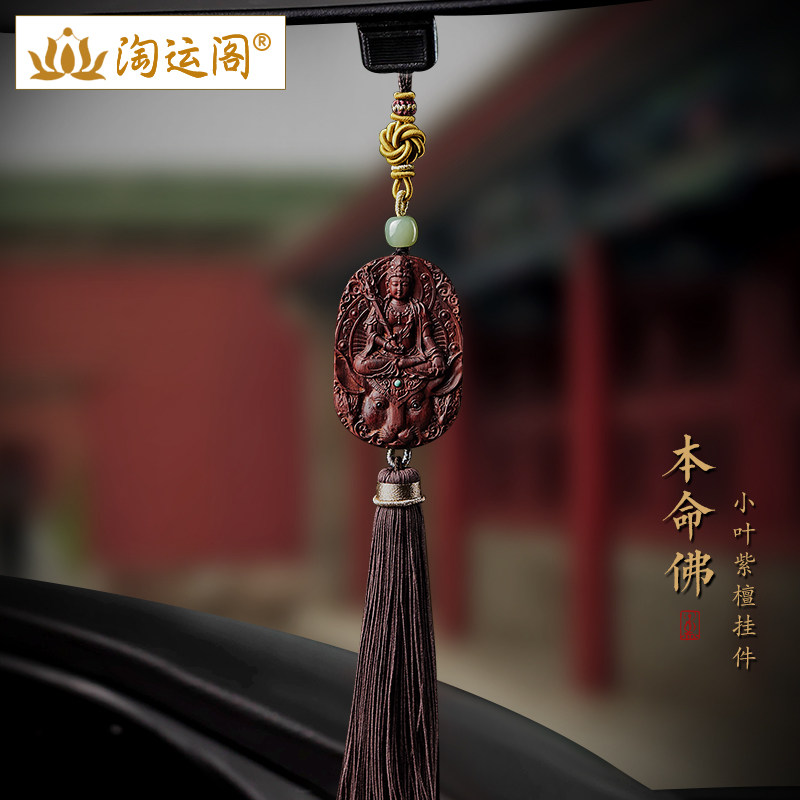 小叶紫檀汽车挂件男女和田玉兔年本命佛流苏车挂饰车内后视镜吊坠