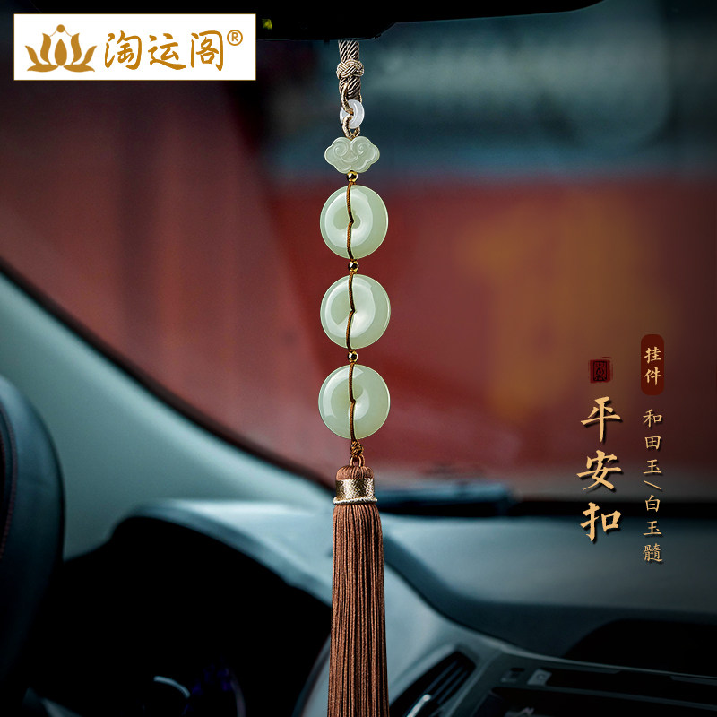 和田玉平安无事牌汽车挂件朱砂葫芦貔貅本命佛后视镜车内流苏吊坠