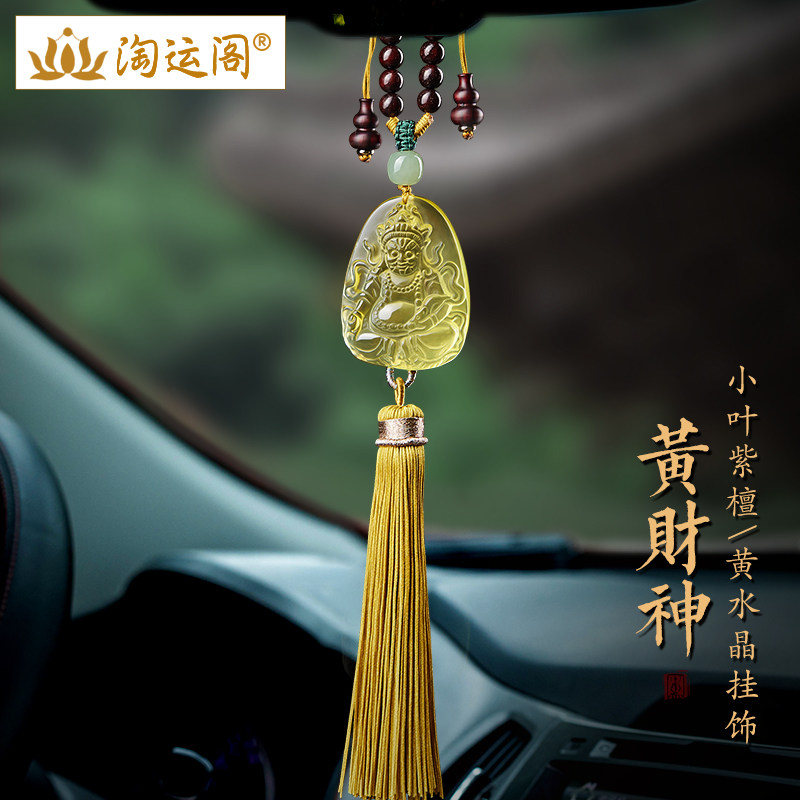 黄财神汽车挂件车内吊饰高级感黄水晶流苏小叶紫檀后视镜车载挂饰