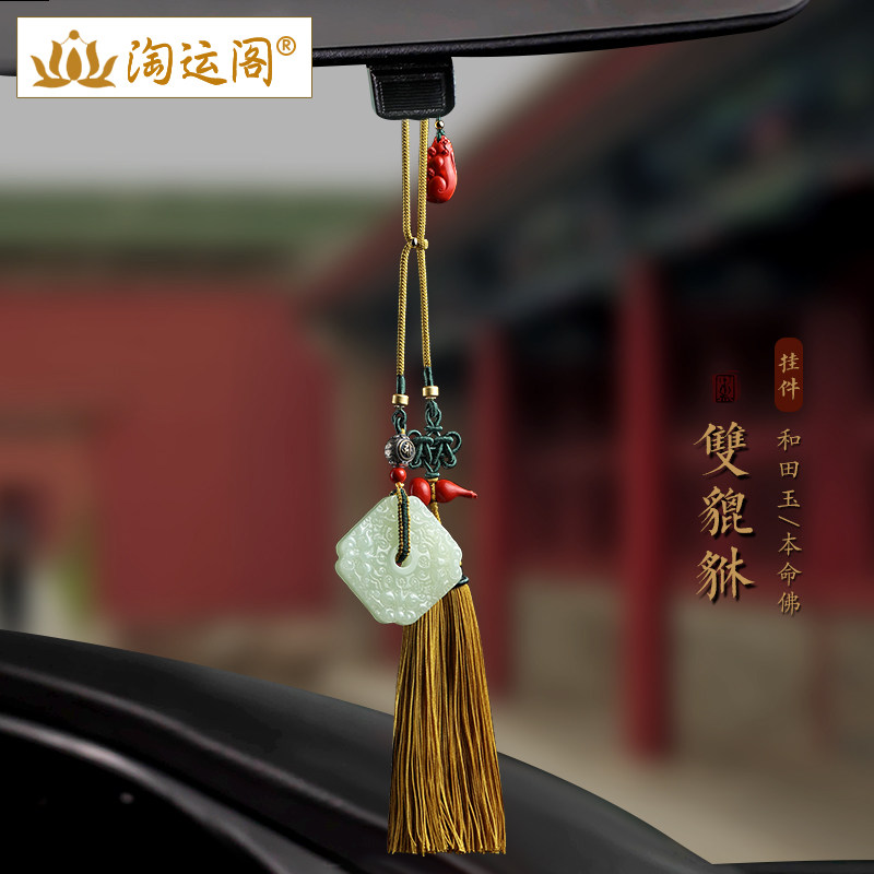 双貔貅和田玉汽车挂件紫檀葫芦翡翠平安扣流苏挂饰车内后视镜吊坠