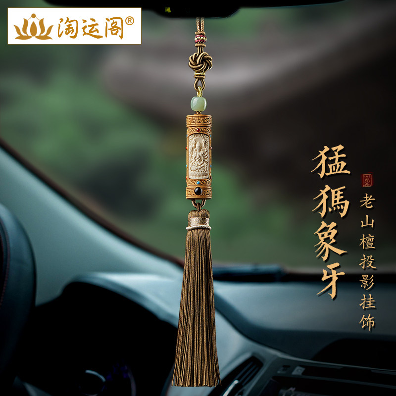 老山檀汽车挂件2024年新款猛犸象牙本命佛车内吊饰流苏后视镜挂饰